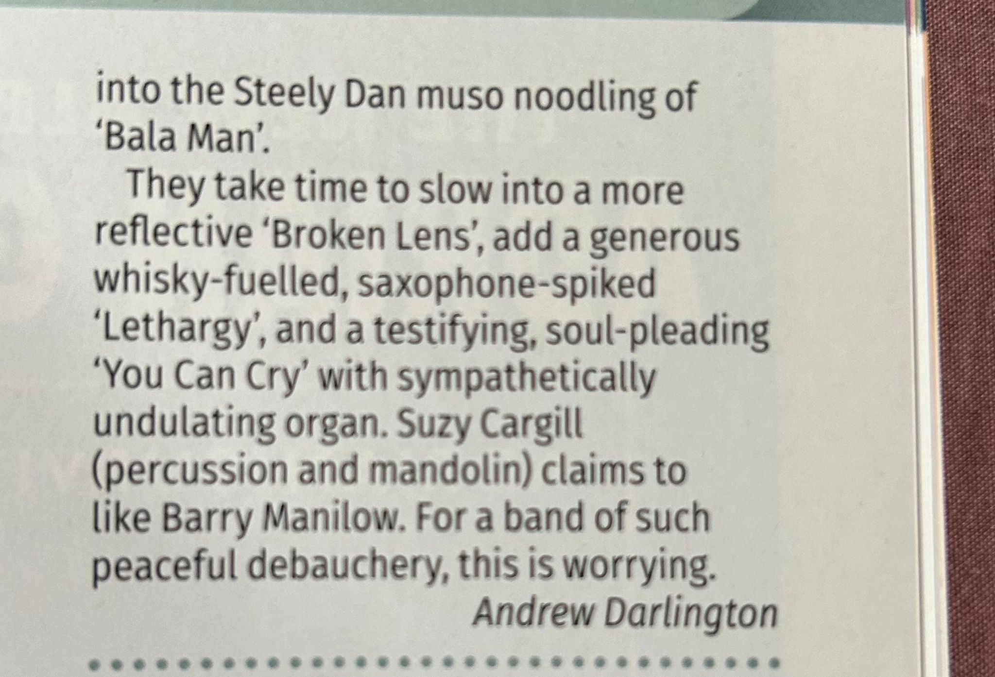 Corralling some of Scotland's best players, this six-piece have the talent to roam beyond the prescribed pentatonic box ... the title track (to Double Measures) is a winningly wonky gypsy-jazz lurch.