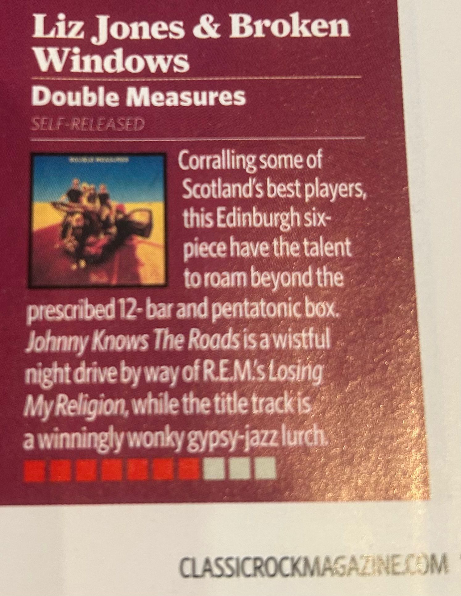 Having just released their best studio work to date, 'Double Measures' (on Digital, CD, Vinyl), Broken Windows build on the success of studio album 'Bricks & Martyrs' 2021, and live album 'Live at The Voodoo Rooms' 2023, which both received national (BBC Scotland) radio play and multiple excellent reviews.
